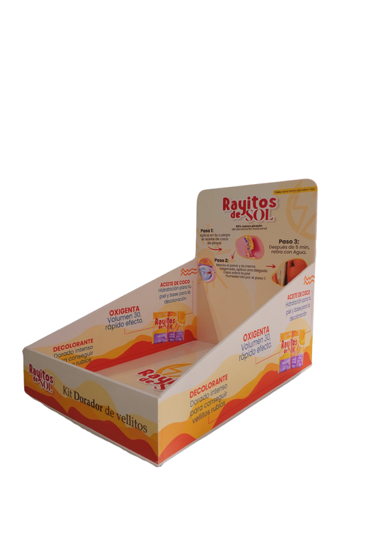 Rayitos de Sol es el kit completo para decolorar el vello corporal, brindando un tono dorado radiante que embellece suavemente el cuerpo con un resplandor vibrante en cada vellito preservando su aspecto natural. Rayitos hidrata y protege el folículo piloso durante el proceso de decoloración, reduciendo en un 99% la irritación dejando una sensación saludable en la piel de tu cuerpo.